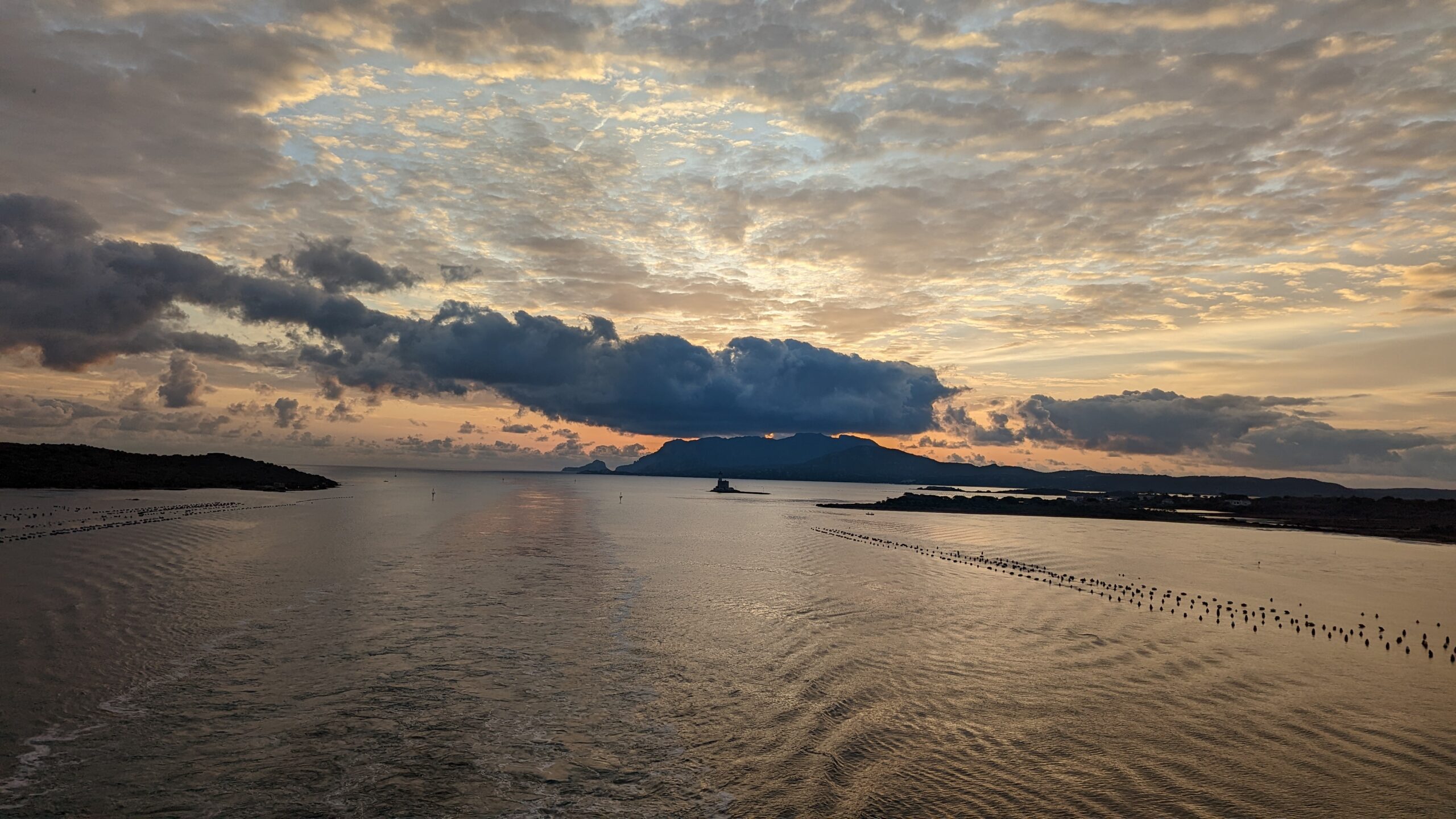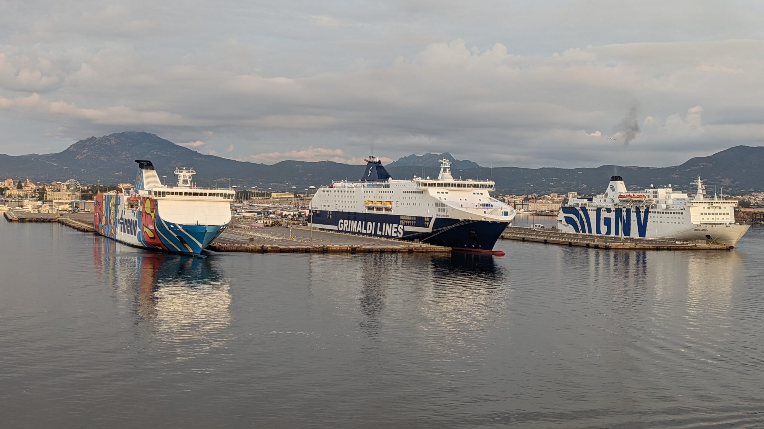 Die Nacht auf der Fähre war sehr angenehm. Das Meer war ruhig – Stichwort Ententeich – und entgegen meinen Erwartungen war es auch in der Kabine ziemlich ruhig. Um 6.00 Uhr müssen die Kabinen verlassen werden, damit auch alle ihr Frühstück noch auf dem Schiff einnehmen. Wir nutzen die Zeit, um auf Deck das Wetter und die Möwen zu begutachten. Unsere Fähre hatte Verspätung. Irgendwie schien es Stau zu geben bei der Hafeneinfahrt in Olbia. So genau wissen wir es aber nicht. Die Lautsprecherdurchsagen waren eher unverständlich.