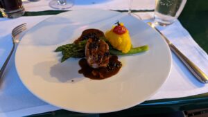 In der Region besteht eine grosse Auswahl an ausgezeichneten Restaurants, was weit herum bekannt zu sein scheint. Am Pfingstsamstag oder Sonntag war es auf jeden Fall schwierig, einen Tisch zu bekommen. Nach längerer Suche landeten wir im Hotel de l’Ourse in Sugiez. Das Speisekarte ist französisch geprägt. Das Menü sehr empfehlenswert und die Weinempfehlungen – natürlich nur aus der Region – des Chef sehr gut. Alles war so gut, dass wir für Sonntag ebenfalls einen Tisch reservierten.