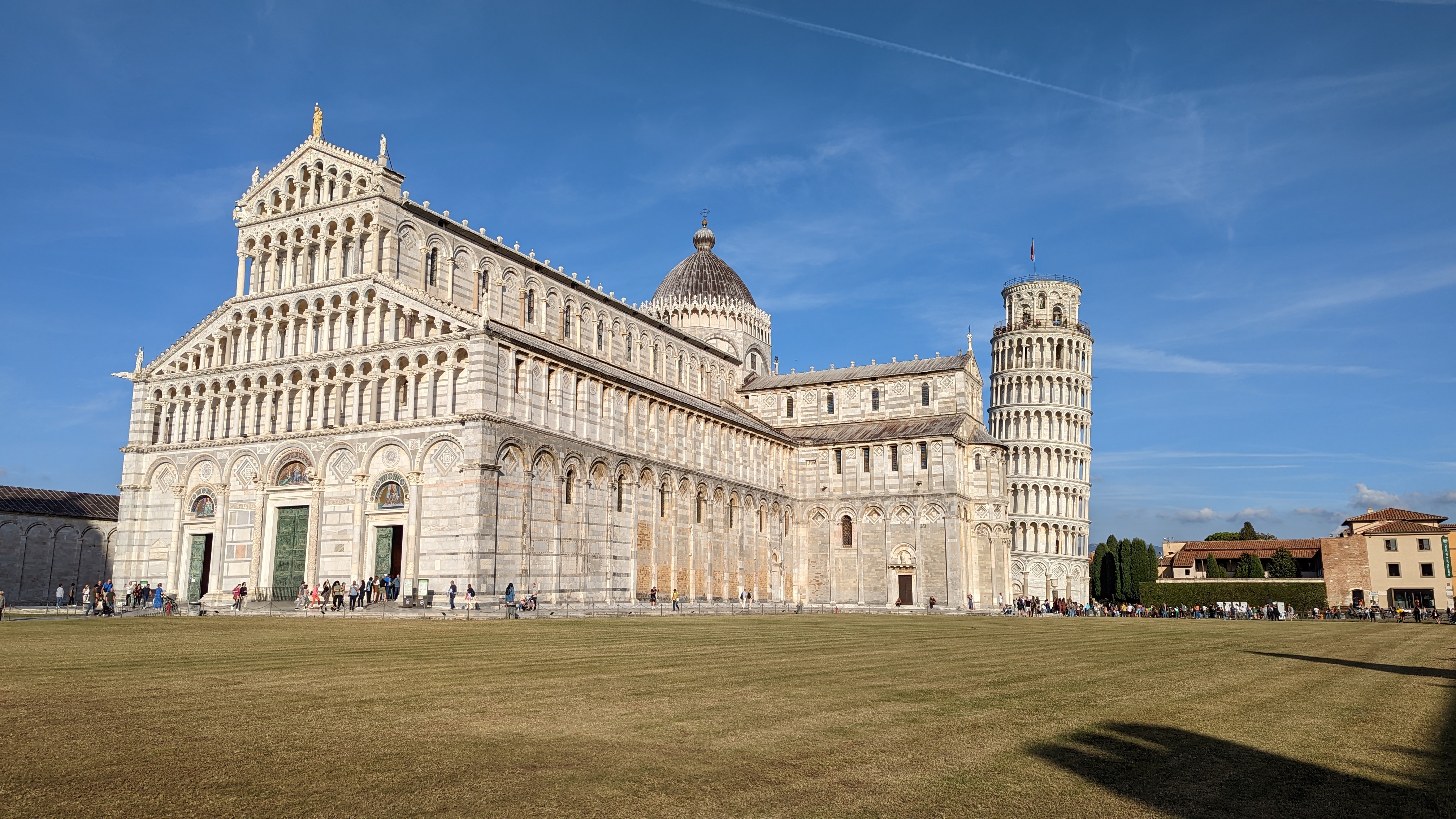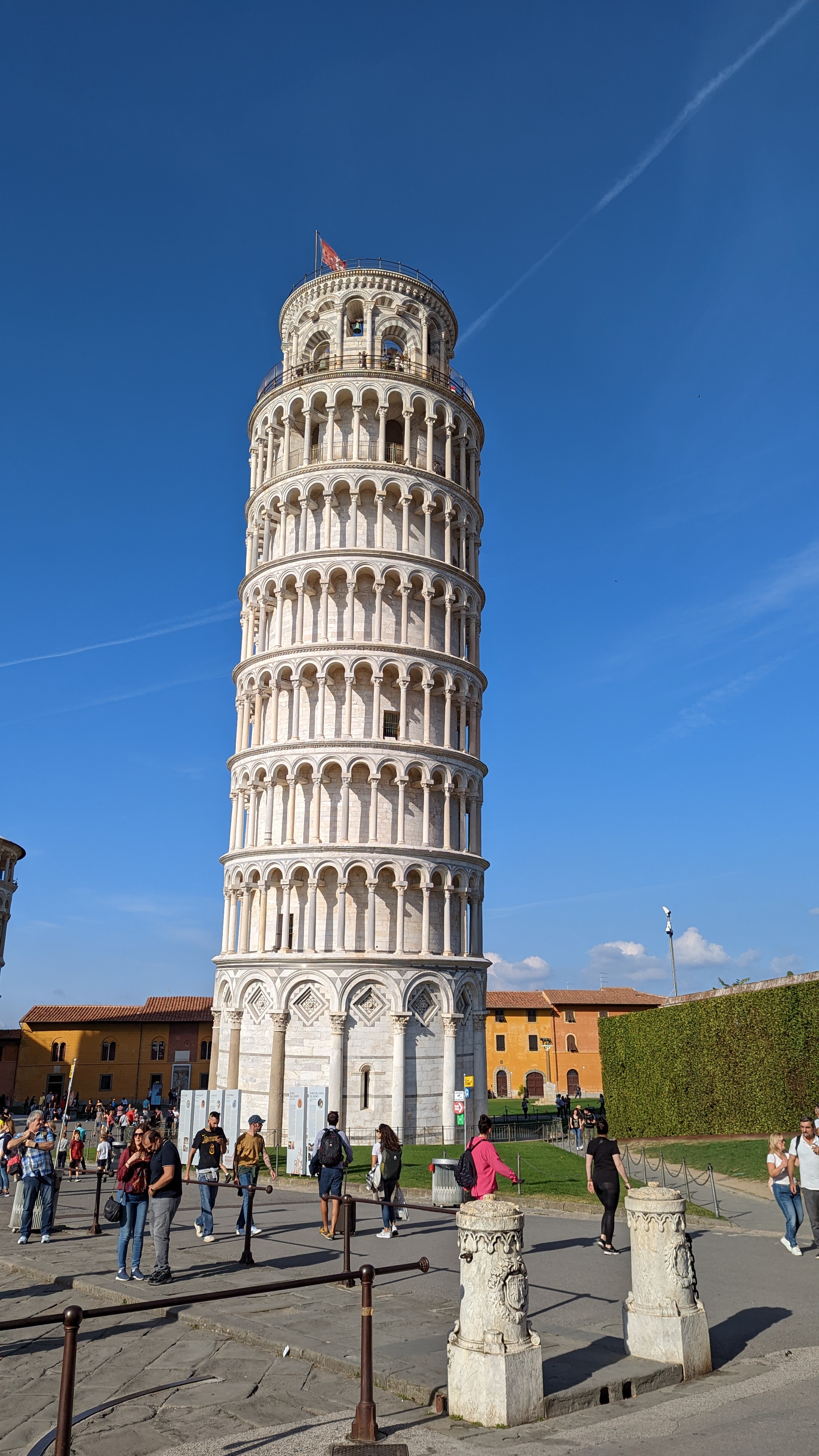 Ein Stopp in Pisa hat sich angeboten, weil wir einmal nicht mit dem Camper, sondern mit dem Auto unterwegs waren. Das macht die Parkplatzsuche in diesem völlig überlaufenen Ort einfacher. Die Souvenirstände, welche den Weg zum schiefen Turm säumen, sind ein Graus. Für uns war nicht nachvollziehbar, wie man so etwas kaufen kann. Der Turm und die Bauwerke um den Turm waren es aber auf jeden Fall wert, sich durch den Souvenir-Dschungel und die Menschenmassen zu kämpfen. Ein Selfie haben wir gemacht. Aber auf diese «Ich stütze den Turm, damit er nicht kippt»-Fotos haben wir verzichtet.