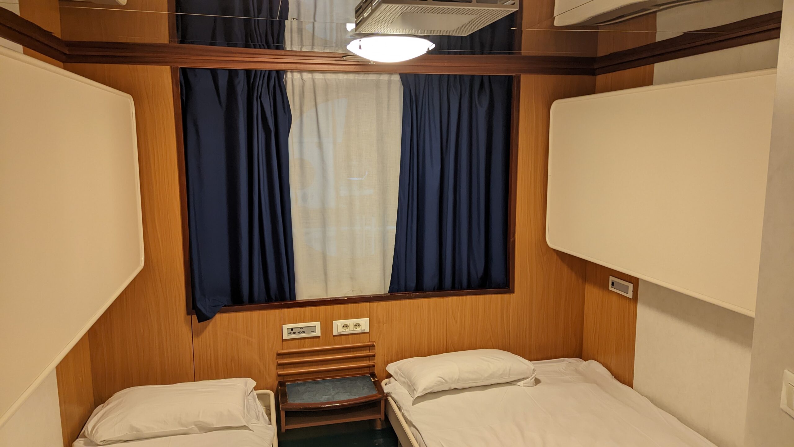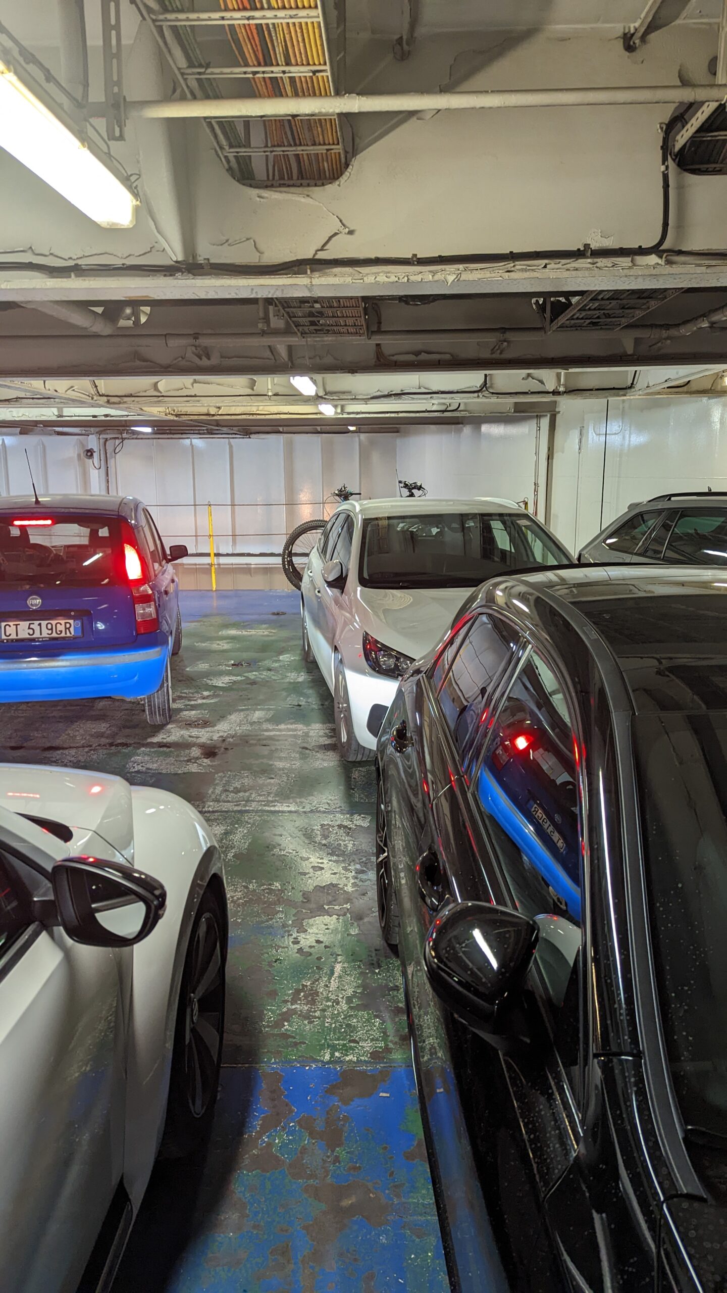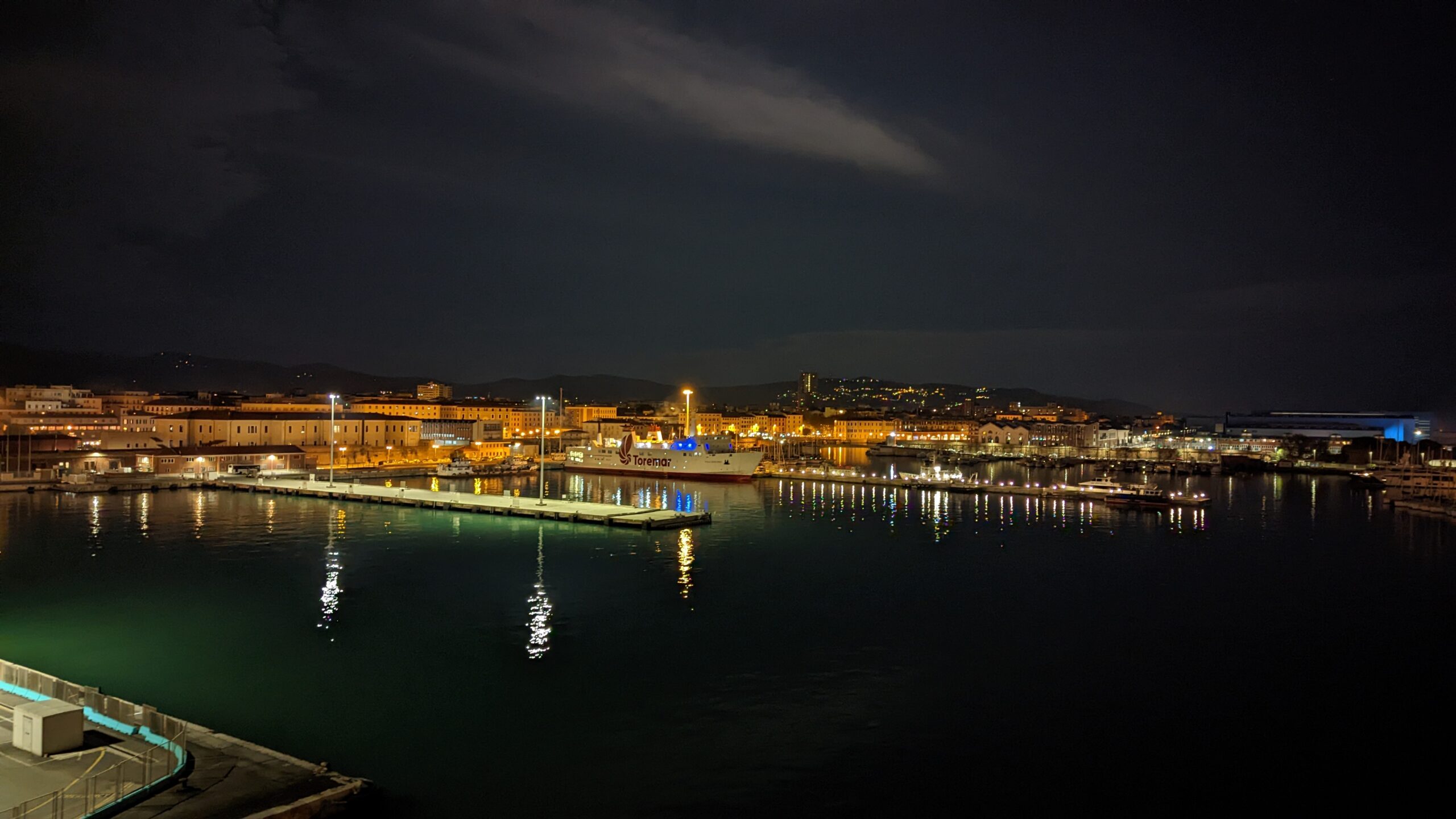 In Livorno angekommen stand die Einschiffung an. Wir sind beide schon mit Fähren gefahren – teilweise auch über Nacht. Aber die Fähre haben wir dabei immer als Fussgänger betreten. Nun also zum ersten Mal mit dem Auto. Zu forderst in der Reihe standen praktisch nur Schweizer – alle überpünktlich, wie wir auch. Wir erhielten eine Nummer und die Info, dass die Einschiffung um 20.00 Uhr starten würde. Entgegen allen Erwartungen ging die Laderei aber bereits um 19:30 Uhr los. Zu früh für den Italiener vor uns. Er war nicht da. Weil weit vorne in der Reihe fanden wir uns nach der Einschiffung auf Deck 5 wieder. Zuoberst zu hinderst. Dafür war der Weg zur Kabine kurz. Eine grosszügige Vierbettkabine in 2er-Belegung. Dusche und WC in der Kabine. Und sehr ruhig. Nach dem der Hafenlotse von Board war, gingen wir schon bald schlafen, den die Kabine mussten wir bereits um 6:00 Uhr wieder räumen.